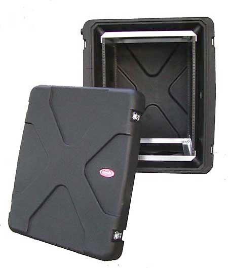 SKBs new Roto Shock Racks feature a 20" deep rack frame installed in a roto molded tough shell with an integrally molded valance that eliminates the metal valance on the outside of the case, coupled with a rubber gasket on both the front and rear doors for water resistant protection. The integrated molded valance, ergonomic handles, and recessed, heavy-duty twist latches allow these cases to meet most ATA and military specifications.